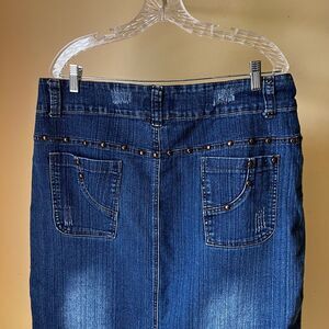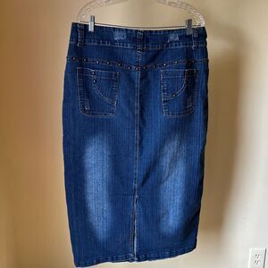Y2K No Fuze Denim Midi Skirt Size 16 Blue Studded Pockets Pencil Jean 2000s