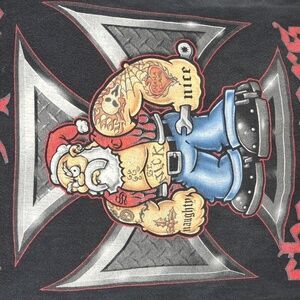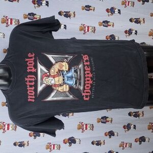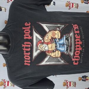 Y2K North Pole Choppers Santa Claus Biker graphic design LG black & red t-shirt