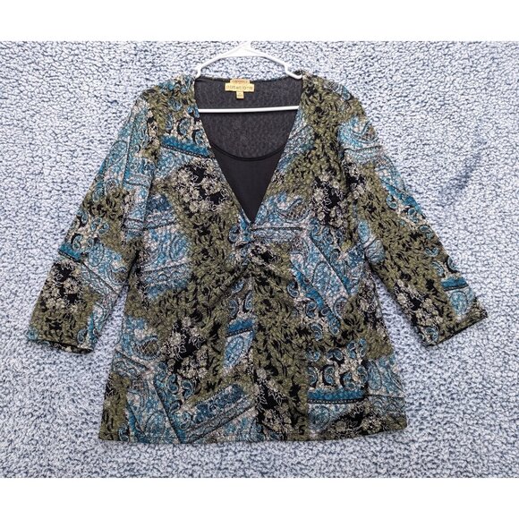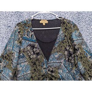 Y2K Notations Stretch Paisley Babydoll Top Size XL Boho Artsy Fairy Grunge 90s