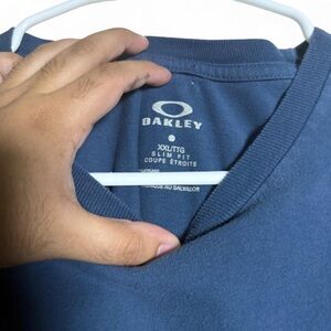 Y2K Oakley Spell Out Blue Slim Fit T-Shirt Men's Size XXL