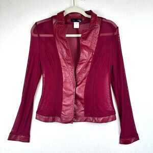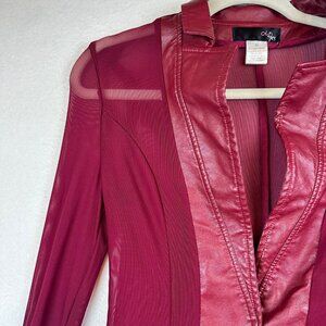 Y2K Oh Yes Red Mesh Deep V Shirt Womens Size M Goth Vampira Posh Mod Grunge