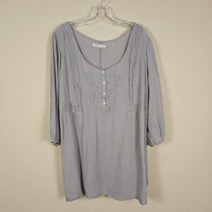 Y2K Old Navy 3X Pintuck Blouse Embroidered Semi Sheer Lightweight 3/4 Sleeve