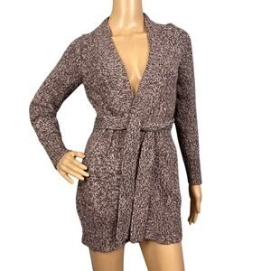 Y2K Old Navy Cardigan Belted Taupe Brown Lambswool Blend Size S Grandmacore