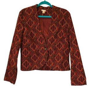 Y2K Old Navy Corduroy Jacket Paisley Dark Whimsigoth Classic Maroon Short | L