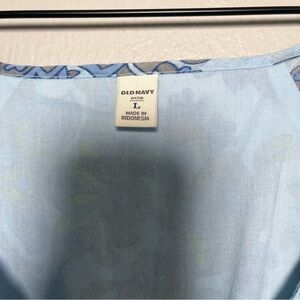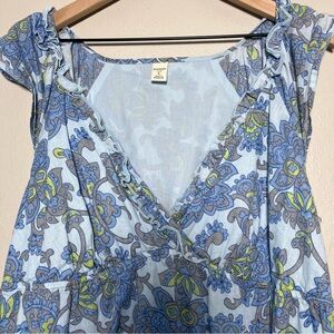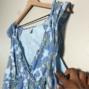 Y2K Old Navy Midi Dress Large Blue Paisley Cap Sleeve Cottagecore Babydoll Tiered Summer
