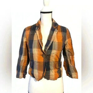 Y2K Old Navy Plaid Embroidered Blazer Size Small