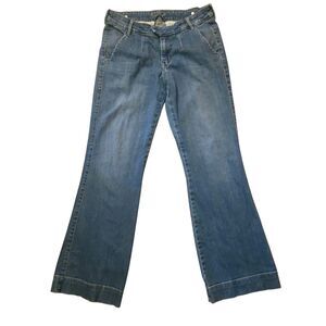 The Y2K Old Navy The Flirt Size 6 Jeans offer a comfortable, stretchy fit with a trendy bootcut style. Made with a blend of spandex and cotton, these mid-rise jeans are designed for a regular size 6 waist (30 inches) and a 30-inch inseam. The classic blue color and flattering bootcut silhouette make these jeans a versatile and stylish addition to any woman's wardrobe. With the reputation of Old Navy for quality and affordability, these jeans are sure to become a go-to staple for everyday wear.