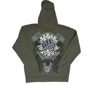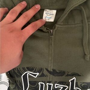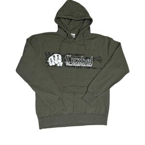 Y2K Olive Green Zip Up Graphic Hoodie NWOT
