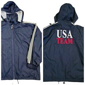 Y2K Olympics USA Team Jacket Windbreaker Navy Blue Embroidery Nylon Sz XL Hood