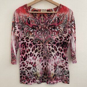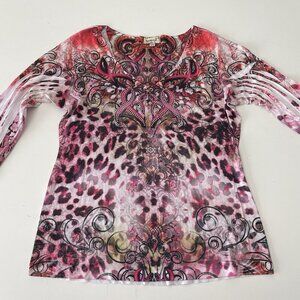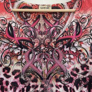 Y2K One World Rhinestone Pink Cheetah Print Whimsy Fairy Festival Top Artsy PM