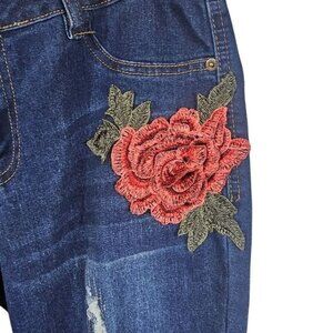 Y2K One5One Floral Distressed Jeans 8 3D Embellished Skinny Stretch Mid Rise
