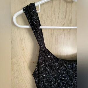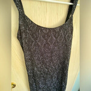 Y2K Onyx Nite Silver Metallic Black Knit Occasion Dress with Slit Sz 10