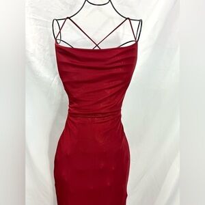Y2K Opera red shimmery maxi dress with leg slit size M