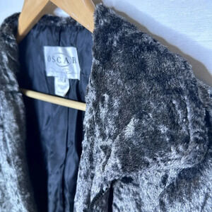 Y2K Oscar De La Renta Plush Soft Metallic Silver Zip Up Moto Jacket