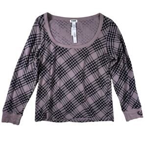 Y2K PINK Victoria’s Secret Plaid Thermal Top 2XL | Mauve Black Lounge Crest NWT