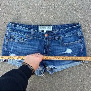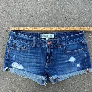 Y2K PINK Victoria's Secret Very Low Rise Distressed Denim Shorts Size 8