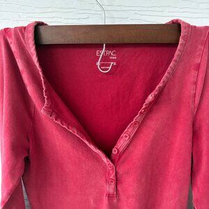 PACSUN Est. 1980 Ashlee Washed Notched Henley Long Sleeve Cropped Top XS