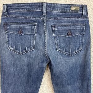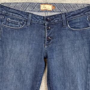 Y2K Paige Denim Jeans Low Rise Flare Leg Raw Button Fly Hem Size 30 Retro