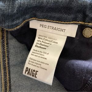 Y2K Paige Jeans peg straight leg style. Size 26. Low rise. Made in the USA. Good preowned condition, small spot on one leg, see pictures.