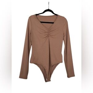 Gorgeous, unique top with crocheted hems. The color is light peach. I am a true size medium in women’s and the sleeves were too tight for me. I’m thinking it’s actually a juniors medium - which is usually a women’s small. X-small should work as well.