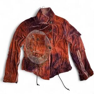 Y2K People of the Labyrinths Velvet Jacket M Deconstructed POTL Boho Art To Wear
