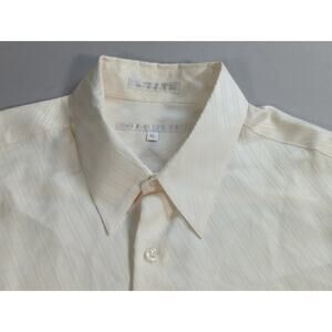 Y2K Perry Ellis Mens XL Silk Shirt Ivory Short Sleeve Button Front Textured