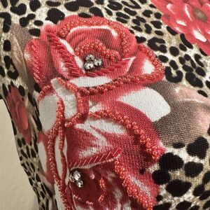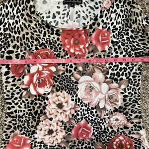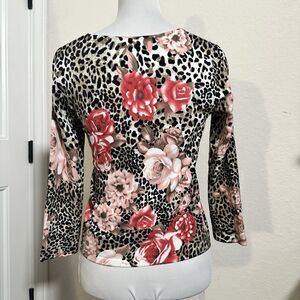 Y2K Pierre New York Pink Animal Print Floral Blouse Women's size Small