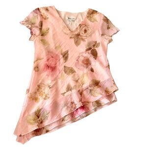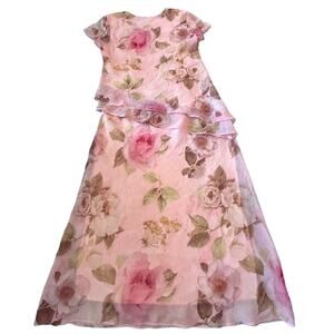 Y2K Pink Floral Asymmetrical Blouse and Skirt Fairycore Ensemble Set