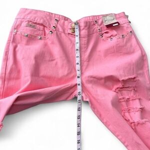 Y2K Pink Low Rise Studded Ripped Flare Jeans