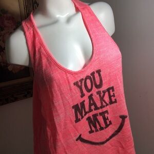 Y2K Vintage Pink Spring Break Souvenir Tank Top Tee Swim Cover-up You make me Smile OS Super cute, super soft , cozy and adorable. Well made not cheap .. very snuggly knit pink with black “You make me Smile “ written across the front . Perfect spring break tourist vacation muscle tank tee Racerback shirt . No brand . One size . Oversized fit . No damage .