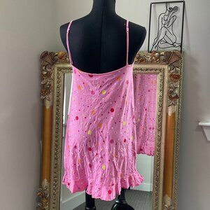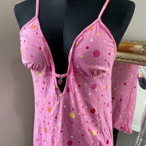 Y2K Pink Victoria's Secret Polka Dot V-Neck Mini Dress Ruffle Hem Size L Pink