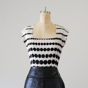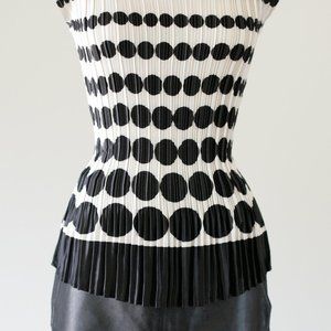Y2K Pleated Black and White Polka Dot Blouse