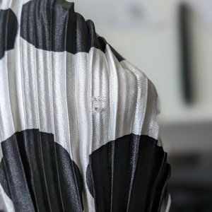Y2K Pleated Black and White Polka Dot Blouse. The first photo shows the back of the blouse worn in front (I personally like this better).