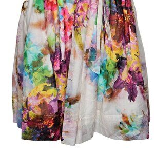 Y2K Pleated Strapless White Watercolor Floral Dress by SIngle Women's Small
