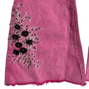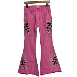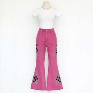 Y2K Pol Hot Pink Dreams Embroidered Bell Bottoms 70s Festival Flare Jeans Small