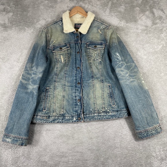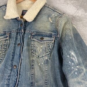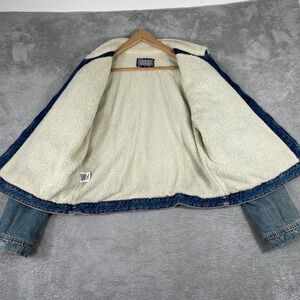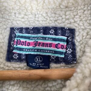 Y2K Polo Jeans Ralph Lauren Denim Jacket Womens XL Sherpa Lined Distressed 2000s