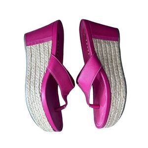 Y2K era, this pair is in great gently used condition barely worn. Thong strap & sole is leather. 3.75” wedge heel. Perfect versatile shoe for warmer weather, lots of life left in this pair.
