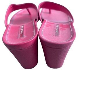 Y2K Prada Magenta Flip Flop Wedge Heels