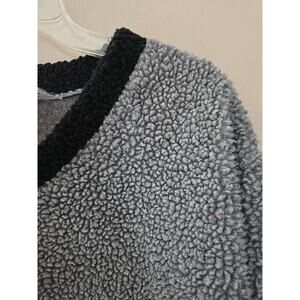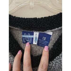 Y2K Preppy Venezia Gray Argyle V-Neck Sherpa Pullover Sweater Womans Size 22/24. Pre-owned