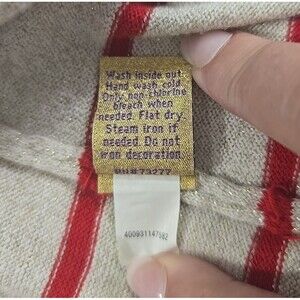 This Y2K Princess Vera Wang Cream Red Sweater in size XL is a festive and elegant garment perfect for the holiday season. The sweater features a tight-knit striped pattern with gold metallic flecking and sequin accents along with a charming bow detail, adding a touch of sparkle to a classic design. Made from a blend of polyester and cotton, this sweater is machine washable and easy to care for. With a round neck and long sleeves, it offers a comfortable fit for both casual and party occasions, making it a versatile and stylish addition to any woman's wardrobe.