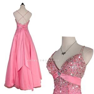 Vintage Y2K Princess Prom Dress Ball Gown by Tiffany Designs - Size 0 - Pink with Silver