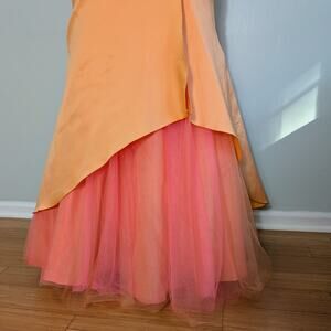 Vintage Y2K Strapless Corset Mermaid Prom Dress Maxi Gown by Precious Formals - Size 10 - Orange, Pink and White