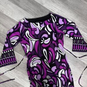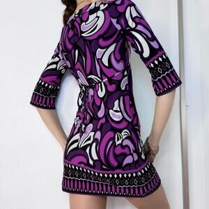 Y2K Psychedelic Print Mini Dress Waist Tie Purple White Black, Liner is Shorter, No Size Tag Best fits 00/0
