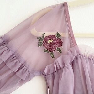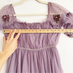 Y2K Purple Fairy Dress Sheer Babydoll Puff Sleeve Sz M Milkmaid Square Neck Long