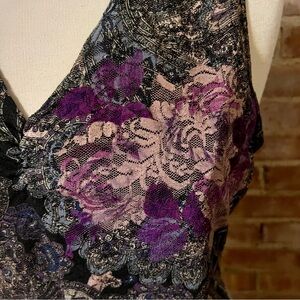 Y2K Purple Floral Paisley Sheer and Lace Sleeveless Top/Tank -Size M -TP17