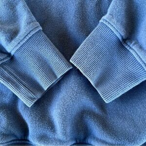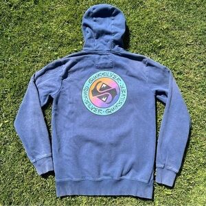 Y2K Quicksilver Blue Surf Hoodie. Circle logo on front and back, kangaroo pocket, hood.