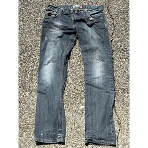 Y2K Quiksilver Quikjean 33x32 dark wash distressed thrashed faded straight