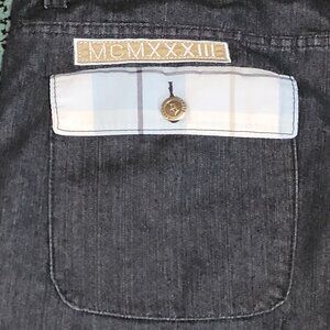 Y2K RETRO RARE RED APE BLUE & WHITE PLAID DETAIL MEN'S DENIM JEAN SHORTS EUC 44