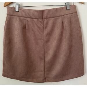 Y2K REWASH Faux Suede Tan Elastic Mini Skirt Festival Moto Night-Out Party-L