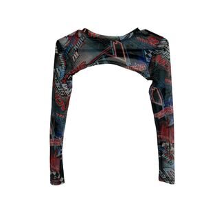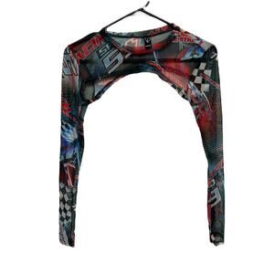 Y2K Racing Mesh Shrug Sleeve Top Cybercore Rave Festival Size M